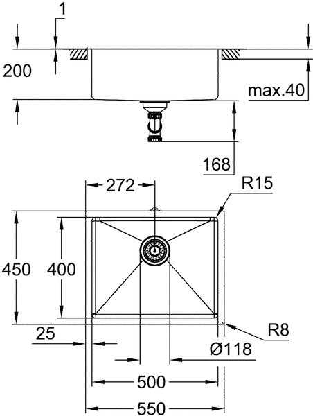 Мийка кухонна Grohe K700U, 533x457x205мм (31654AP0)Мийка кухонна Grohe K700U, 533x457x205мм (31654AP0)