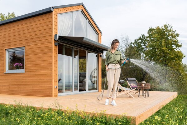 Комплект містить подовжувальний шланг, 8-функціональний пістолет, швидкороз'ємне з'єднання з внутрішнім різьбленням G3/4'', універсальне з'єднання з внутрішнім різьбленням G1/2'' – G3/4''.