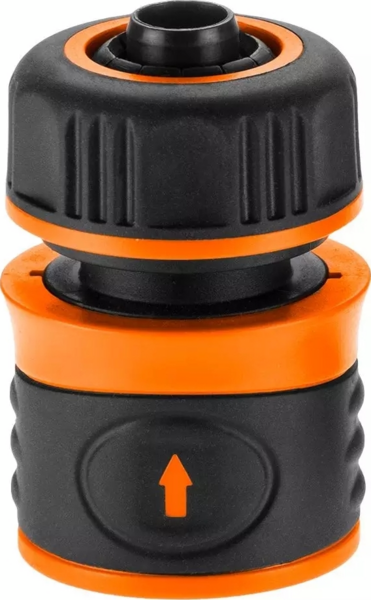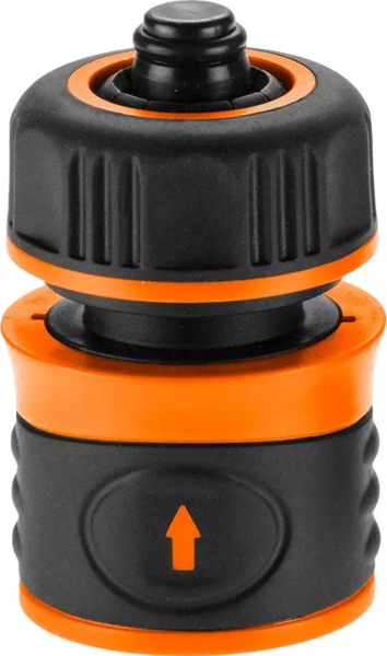 Це практичний елемент, виготовлений з двох високоякісних матеріалів - пластику та гумового покриття, які впливають на комфорт використання та високу довговічність муфти. Функція Stop, якою вона оснащена, перекриває потік води при від'єднанні від спринклера. Це дозволяє зручно зупинити потік, без необхідності перекривати весь водозабір на джерелі. Зручний затискач-перехідник забезпечує точне і швидке підключення до садового шланга діаметром 1/2".