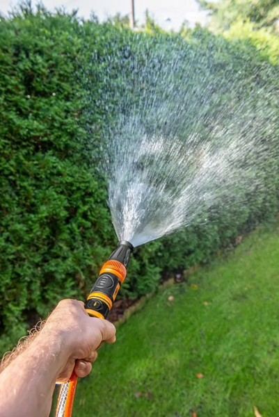Сумісний із садовими шлангами 1/2" та оснащений практичним регулюванням струменя. Це дозволяє вибрати струмінь води відповідно до ваших поточних потреб. Плавне регулювання дозволяє встановити як потужне, точне розпилення, так і розсіяний туман для поливу ніжних рослин. Інструмент виготовлений з високоякісного пластику з додатковими елементами з м'якої TPR-гуми для більшого комфорту.