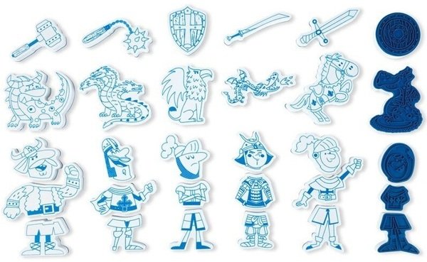 Прекрасно проведіть час, створюючи власні дизайни з цим набором штампів! Включає в себе 30 гравюр з різними малюнками воїнів, щоб дитина могла відтворити кращі битви. Набір легко зберігати завдяки компактним розмірам.