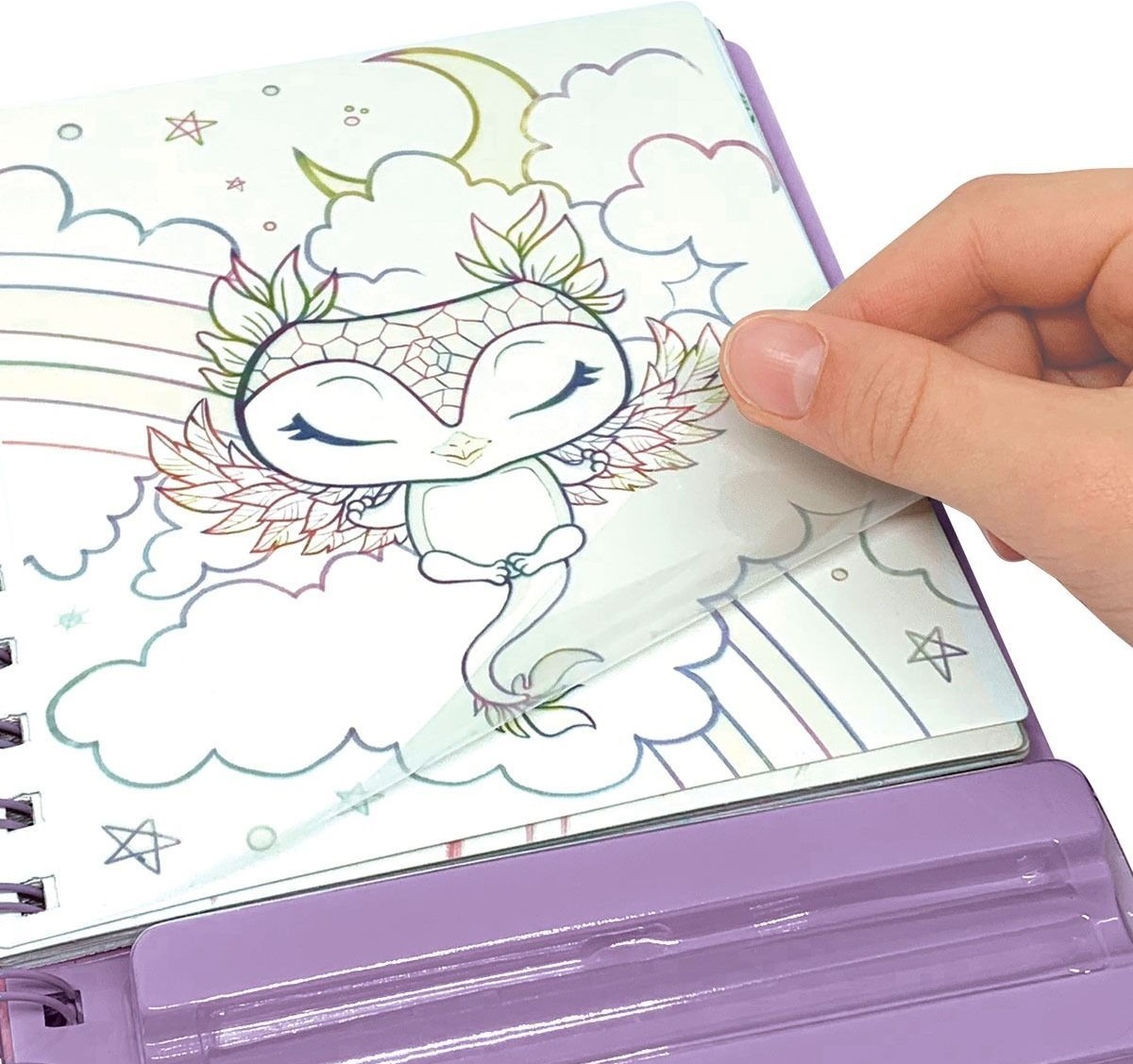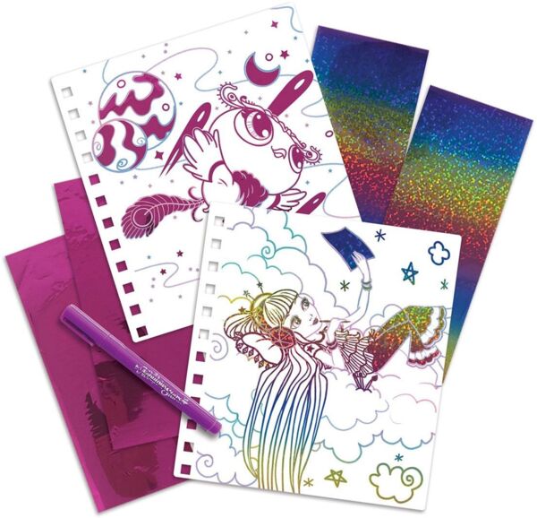 - Додайте останні штрихи до готової картини або ж створіть нові витвори зоряного мистецтва з допомогою особливої ручки. Вона залишає липкий слід на папері, до якого прилипає фольга.