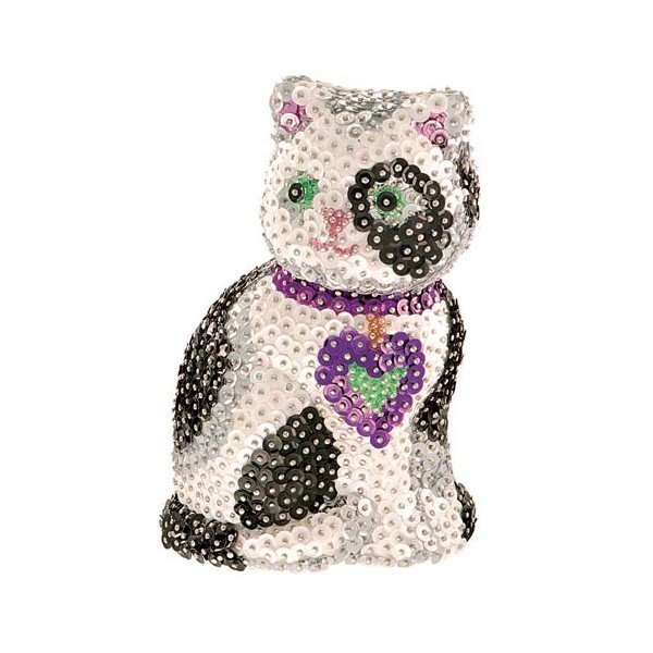 Потрясающий получился у дочери кот, мы его оставили в качестве украшения в комнате, он переливается блестками на солнце или кода попадает свет от лампы. Собрать такое чудо оказалось делом не сложным, потому-то рекомендован набор с восьми лет, хотя думаю, и в младшем возрасте вполне реально справиться. Это наш первый комплект Sequin Art 3D Cat, результат превзошел ожидания, будем брать еще.