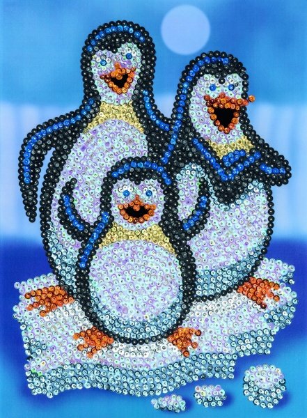 Сім'я веселих пінгвінів, які подорожують на кризі льоду. Саме таку картину з паєток ви зможете створити завдяки набору для творчості від Sequin Art. Готова картина буде мерехтіти та підіймати настрій! Аплікації з блискіток - цікавий і захопливий процес, який вимагає уважності, посидючості й акуратності.