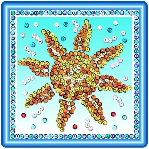 Купили нашей рукодельнице набор для творчества Sequin Art SEASONS. В этот набор входят три основы для картин, кисти, цветные краски, цветные блестки. Дочка создает картины в разных стилях, набор этому способствует, в нем есть все что нужно. Можно и солнце сделать, и луну, и звезды, и космос. Места для детской фантазии очень много! Твори – не хочу, как говорится. Все такое яркое и красочное.