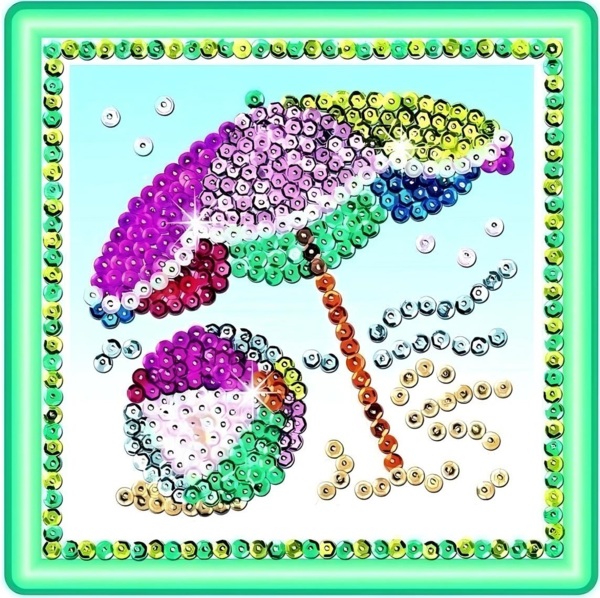 Увидела дочка набор у девочки и очень просила себе такой же. Посмотрела цены, дороговат оказался, но все же приобрела к празднику. В наборе Sequin Art есть много блесток и все аксессуары для начала работы над ним. Результат - очень красивая картина, которую ребенок создал исходя из своих вкусовых предпочтений по уже готовой заготовке. При желании сэкономить можно потратить время и собрать все комплектующие по-отдельности.