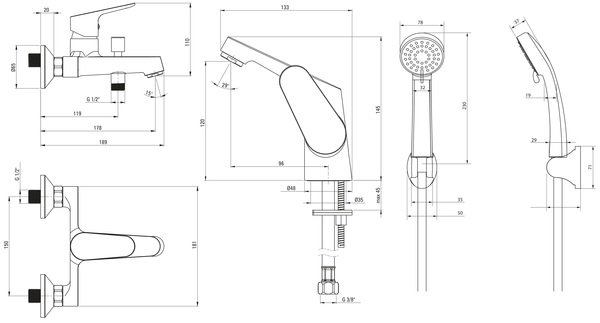 | Комплектація | Ручний душ, Змішувач для ванни, Змішувач для раковини |