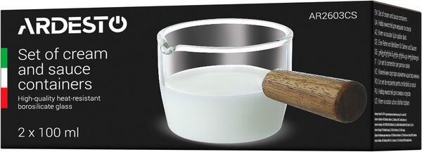 Набір ємностей ARDESTO для вершків та соусів, 100 мл, 2 шт., боросилікатне скло (AR2603CS)