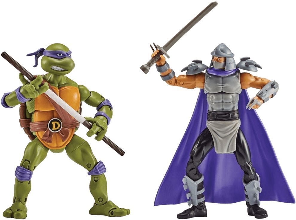 Черепашки-ніндзя вже декілька поколінь є найулюбленішими героями хлопчиків. Всі знають імена головних героїв, але жодна пригода не може обійтися без поганця-противника. Набір фігурок серії "TMNT Classic" - Донателло проти Шредера - чудовий подарунок шанувальникам мультфільму. Фігурки висотою 15 см мають 34 точки артикуляції, щоб відтворити справжній поєдинок воїнів-ніндзя. Мають не тільки ігрову, а й колекційну цінність.