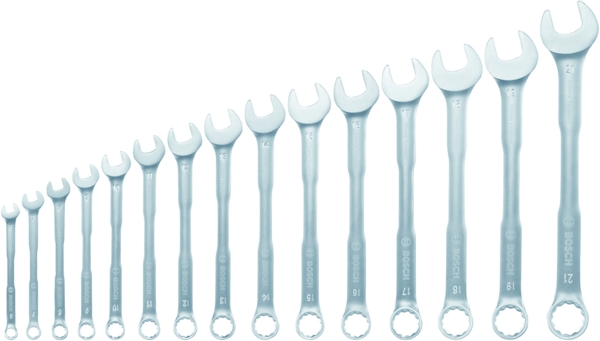 Набір комбінованих ключів Bosch - це багатофункціональний інструмент, необхідний для виконання численних завдань з ремонту та технічного обслуговування в домашніх умовах. Ці ключі мають відкритий і кільцевий кінці, що робить їх дуже універсальними для всіх видів робіт, навіть у невеликих приміщеннях. Цей набір містить розміри: 6, 7, 8, 9, 10, 11, 12, 13, 14, 15, 16, 17, 18, 19, 21. Для додаткової зручності комбіновані ключі постачаються у зручному органайзері для легкого зберігання та перенесення.
