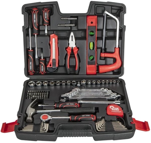 Набір інструментів Top Tool складається з 100 одиниць 1/4", 3/8". Грамотно зібраний комплект може використовуватися для складання і ремонту різних механізмів, для усунення поломок в побуті. Металеві частини інструментів зроблені з хромованою стали.