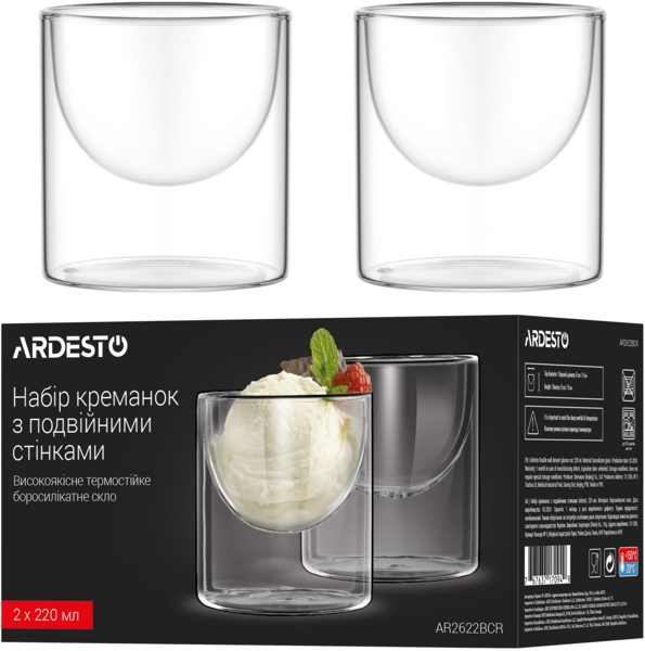 - Набір креманок з подвійними стінками Ardesto, 220мл, 2шт (AR2622BCR)