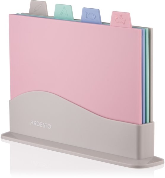 Кухонні дощечки на підставці ARDESTO Fresh (4 шт.) виготовлено зі стійкого до зношування та безпечного пластику