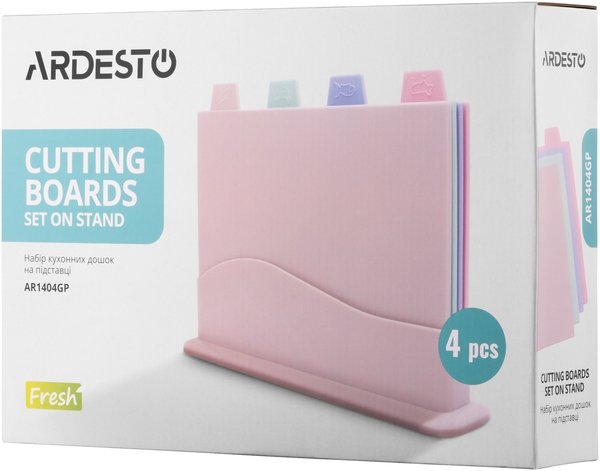 - Набір кухонних дошок на підставці ARDESTO Fresh 4 шт.: 33,5*23,5*7 см, пластик (AR1404GP)