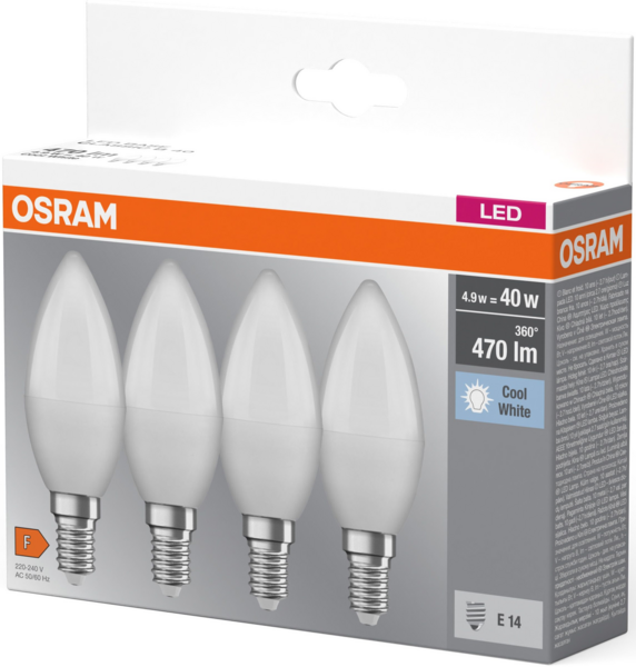 - Набір ламп 4шт Osram Led E14 4.9Вт 4000К 470Лм B40 (4058075819610)