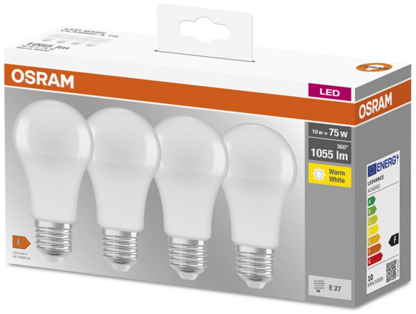 - Набір ламп 4шт Osram Led E27 10Вт 2700К 1055Лм A60 (4058075184992)