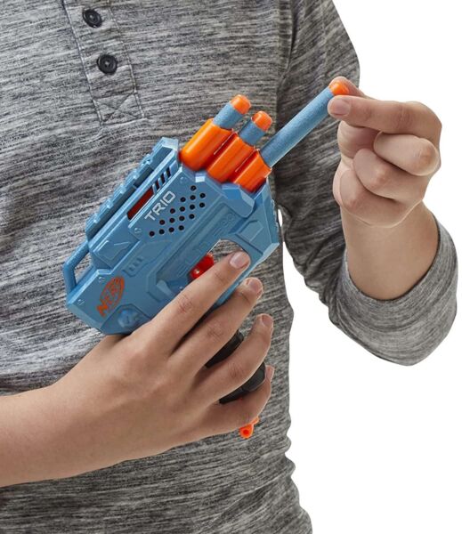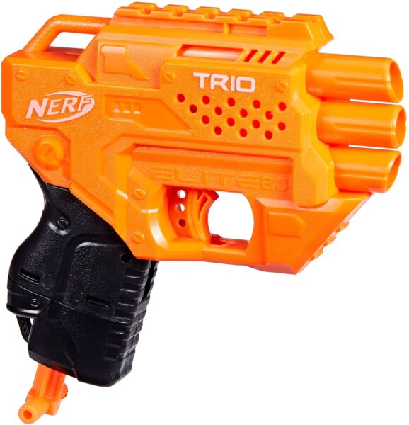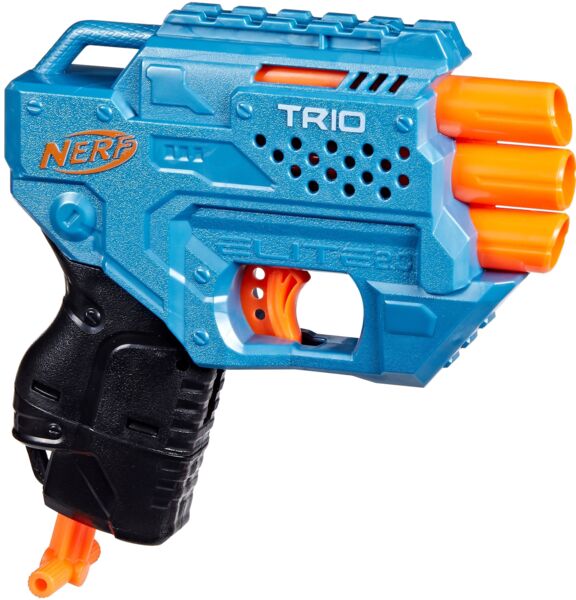 Бластер Тріо – легкий, компактний, потужний і привертає увагу своїми трьома стволами, розташованими вертикально і суворим дизайном серії Нерф Еліт 2.0. Хтось в ньому побачить перевидання бластера Тріад, хтось розгледить Три Брейк.