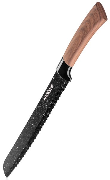Стильний набір ножів доповнить будь-який кухонний інтер’єр і стане незамінним помічником для щоденного використання. У наборі: кухарський ніж (20,3 см), ніж для хліба (20,3 см), ніж слайсер (20,3 см), універсальний ніж (12,7 см) і ніж для чищення овочів (8,9 см). Гостре лезо виготовлено з нержавіючої сталі чорного кольору, стійкої до деформації та корозії, не боїться частого заточування. Безпечне руків’я бездоганно продумане та не вислизає під час використання. Дизайн стилізовано під дерево. Ножі не рекомендовано мити в посудомийній машині. Надійні та міцні ножі ARDESTO Midori створені відповідно до стандартів якості та слугуватимуть довго.