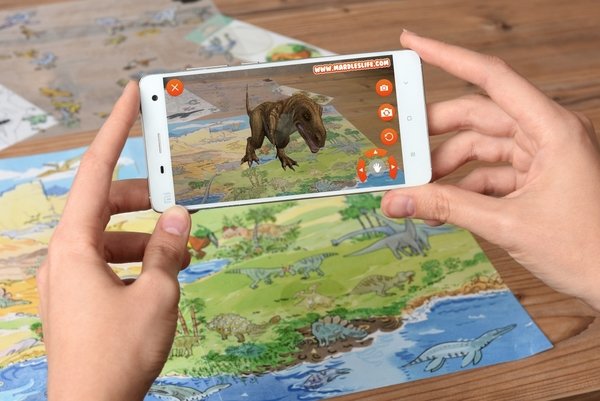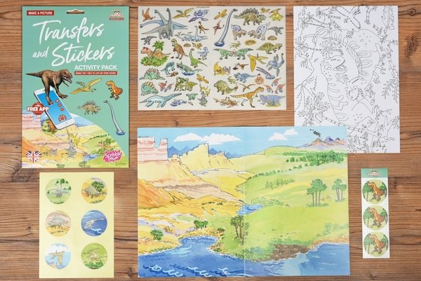 Поскольку ребенок фанат динозавров, то этот набор стал очень желаемым, и как только получили его из МОЙО, он занял всё свободное время. Это не просто масса переводных изображений, которые наносятся на карту из набора, но и интересная игра, где можно самому создать историю. Получили в комплекте приложение, которое можно установить на несколько устройств, оно оживляет картинки, нанесенные на основу.