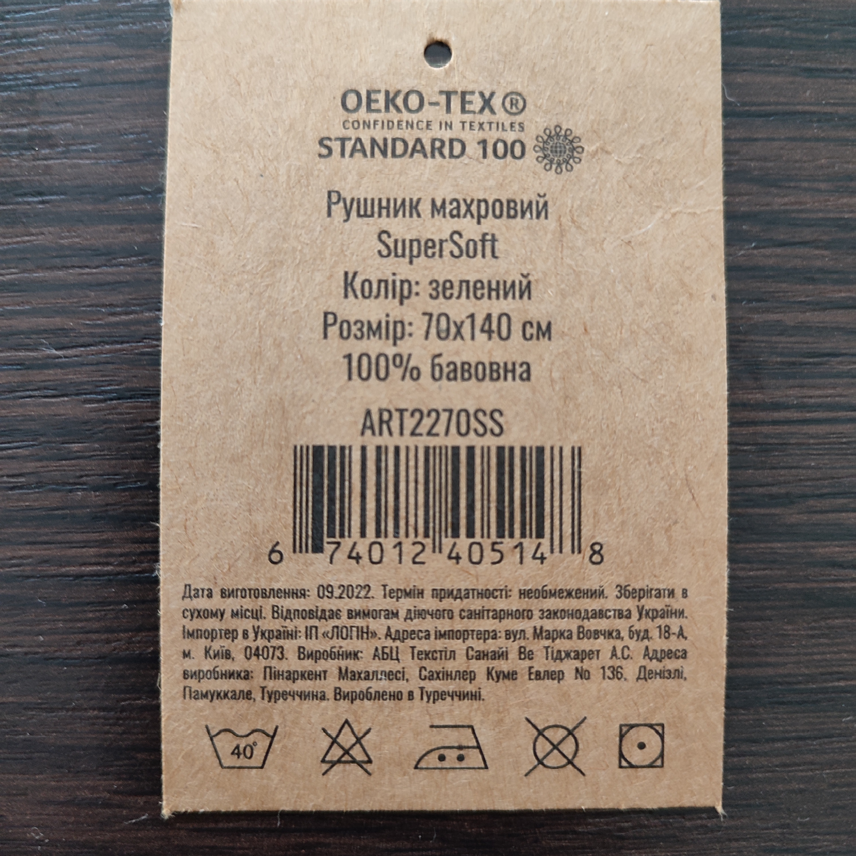 - Набір махрових рушників ARDESTO SuperSoft, білий, зелений 70х140см (ART2270PB_ART2270SS)