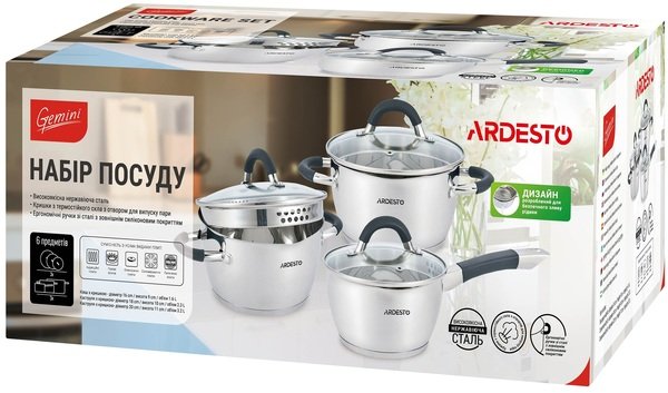 Набір посуду ARDESTO Gemini Gourmet 6 предметів (AR1906PS)Набір посуду ARDESTO Gemini Gourmet 6 предметів (AR1906PS)