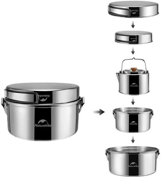 - Набір посуду (каструля, казанок, сковорода, чайник) Naturehike NH22CJ005, нержавіюча сталь