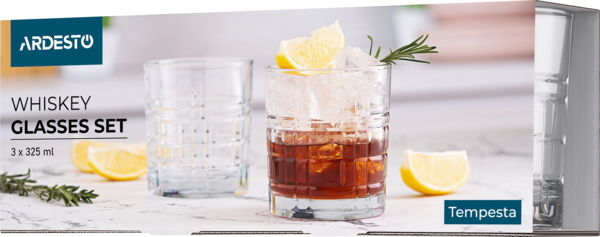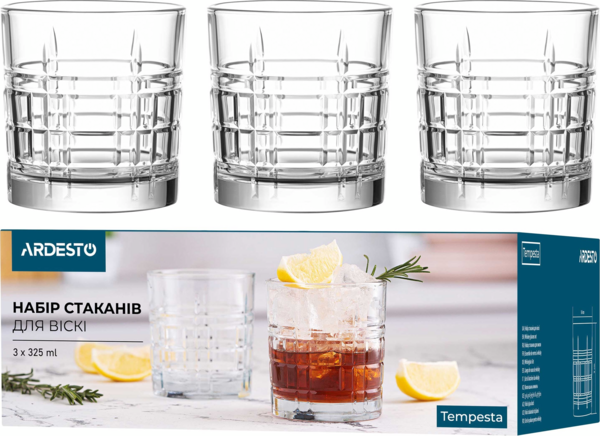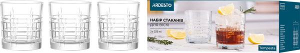 - Набір склянок для віскі ARDESTO Tempesta 325мл, 3шт (AR2632WTT)