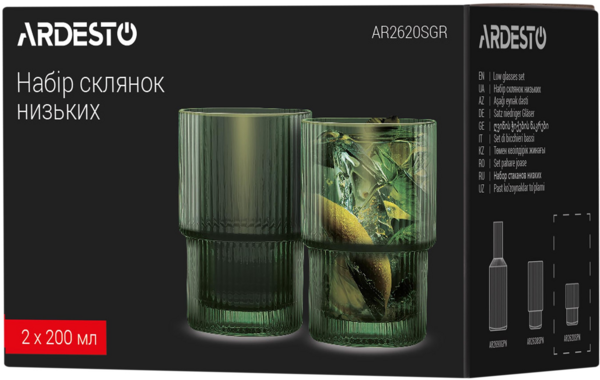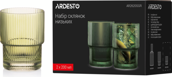 - Набір склянок низьких ARDESTO, 200мл, 2шт, зелений (AR2620SGR)
