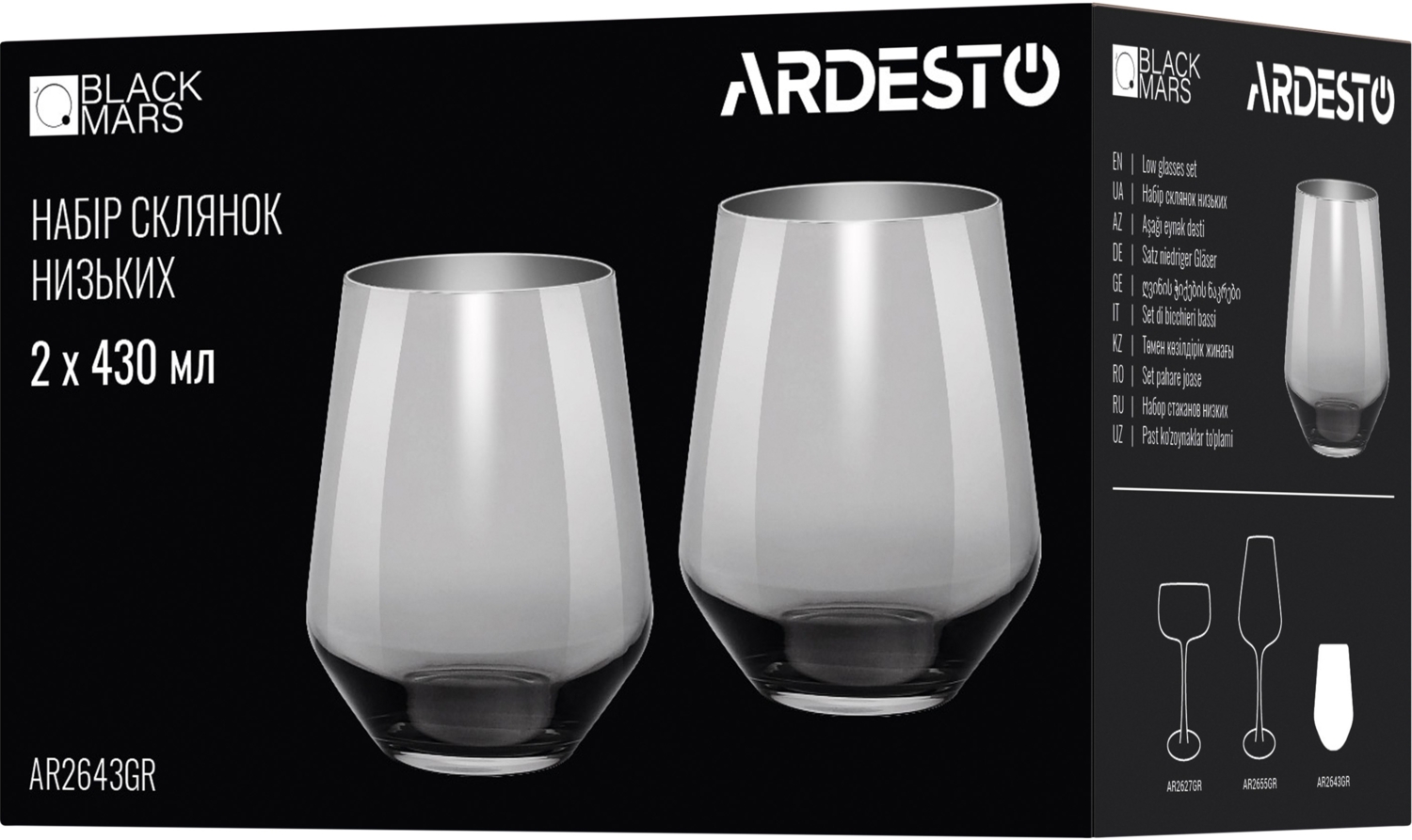 - Набір склянок низьких ARDESTO Black Mars Avior 430мл, 2шт, скло, сірий (AR2643GR)