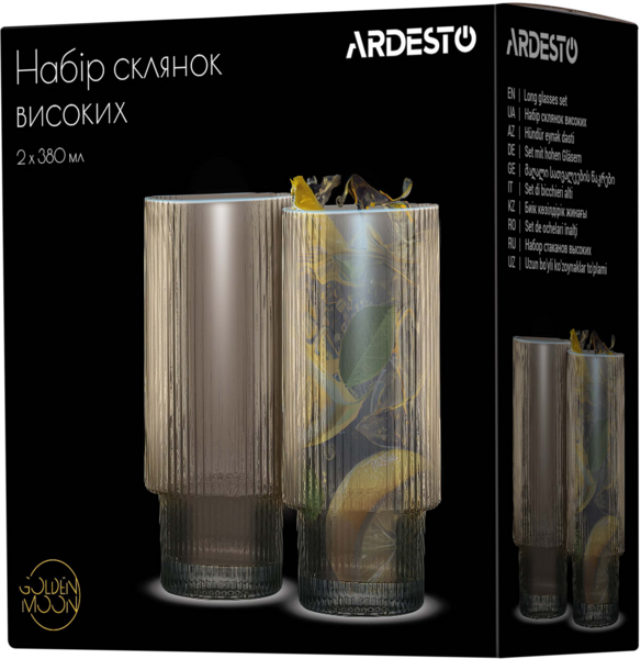 - Набір склянок високих ARDESTO, 380мл, 2шт, золотистий (AR2638GG)