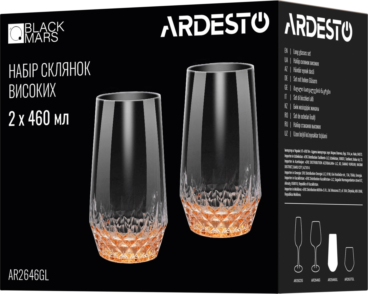 - Набір склянок високих ARDESTO Black Mars Favola 460мл, 2шт, скло, прозоро-золотистий (AR2646GL)