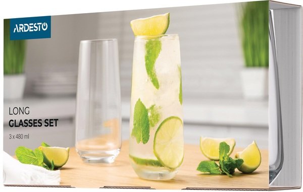 - Набір високих склянок ARDESTO Gloria Shine 480 мл, 3 шт., скло (AR2648GS)