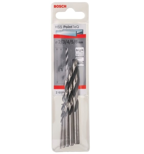 Набір спіральних свердел по металу Bosch HSS PointTeQ DIN 338 (5 шт.) (2608577345). Діаметр свердел 2, 3, 4, 5, 6 мм.