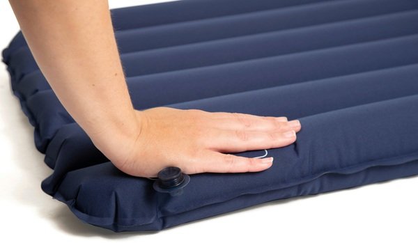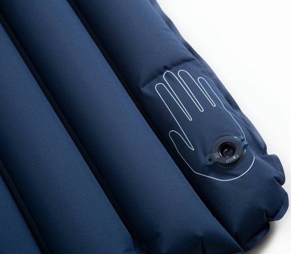 Повітряна подушка товщиною 5 см підтримує тіло і забезпечує комфортний сон, а міцна, але легка тканина з переробленого поліестеру забезпечує довговічність та компактність. Інтегрований насос дозволяє швидко надути килимок, не використовуючи легеневої сили.