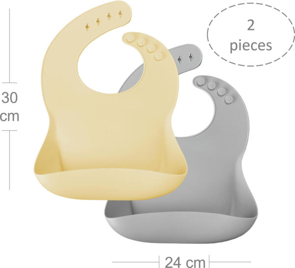 Ці два силіконові слинявчики виготовлені зі 100% харчового силікону — м’якого, гнучкого та безпечного для ніжної шкіри малюка. Обидва мають глибоку кишеню, яка ефективно вловлює їжу, що падає, зменшуючи безлад під час годування. Вони ідеально підходять для методу самостійного прикорму (BLW), стимулюючи дитину до самостійності та розвитку моторики. Легко миються вручну або в посудомийці, витримують стерилізацію. Зверни увагу: деякі натуральні продукти з яскравими пігментами можуть залишати легкі сліди, проте це абсолютно безпечно.