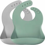 Ці два силіконові слинявчики виготовлені зі 100% харчового силікону — м’якого, гнучкого та безпечного для ніжної шкіри малюка. Обидва мають глибоку кишеню, яка ефективно вловлює їжу, що падає, зменшуючи безлад під час годування. Вони ідеально підходять для методу самостійного прикорму (BLW), стимулюючи дитину до самостійності та розвитку моторики. Легко миються вручну або в посудомийці, витримують стерилізацію. Зверни увагу: деякі натуральні продукти з яскравими пігментами можуть залишати легкі сліди, проте це абсолютно безпечно.