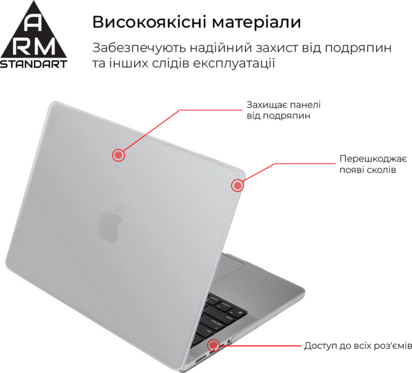 Чохол-накладка ArmorStandart — стильний і надійний аксесуар для MacBook. Він виготовляється з високоякісних матеріалів і забезпечує надійний захист від подряпин та інших слідів експлуатації.