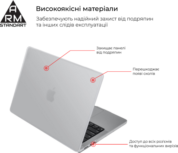 Накладка ArmorStandart - стильний і надійний аксесуар для MacBook. Вона виготовляється з високоякісних матеріалів і забезпечує надійний захист від подряпин та інших слідів експлуатації.