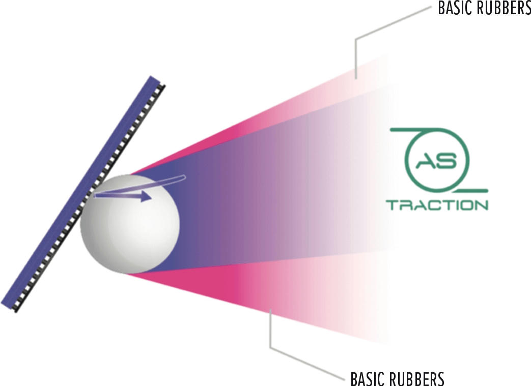 - Технологія Sweet Zone - ця технологія збільшує оптимальну зону удару по гумі. Гравець отримує приємний відгук м'яча та отримує впевненість у своїх ударах. Чутливий верхній шар гуми забезпечує довший час перебування та дає гравцеві можливість краще контролювати траєкторію м’яча.