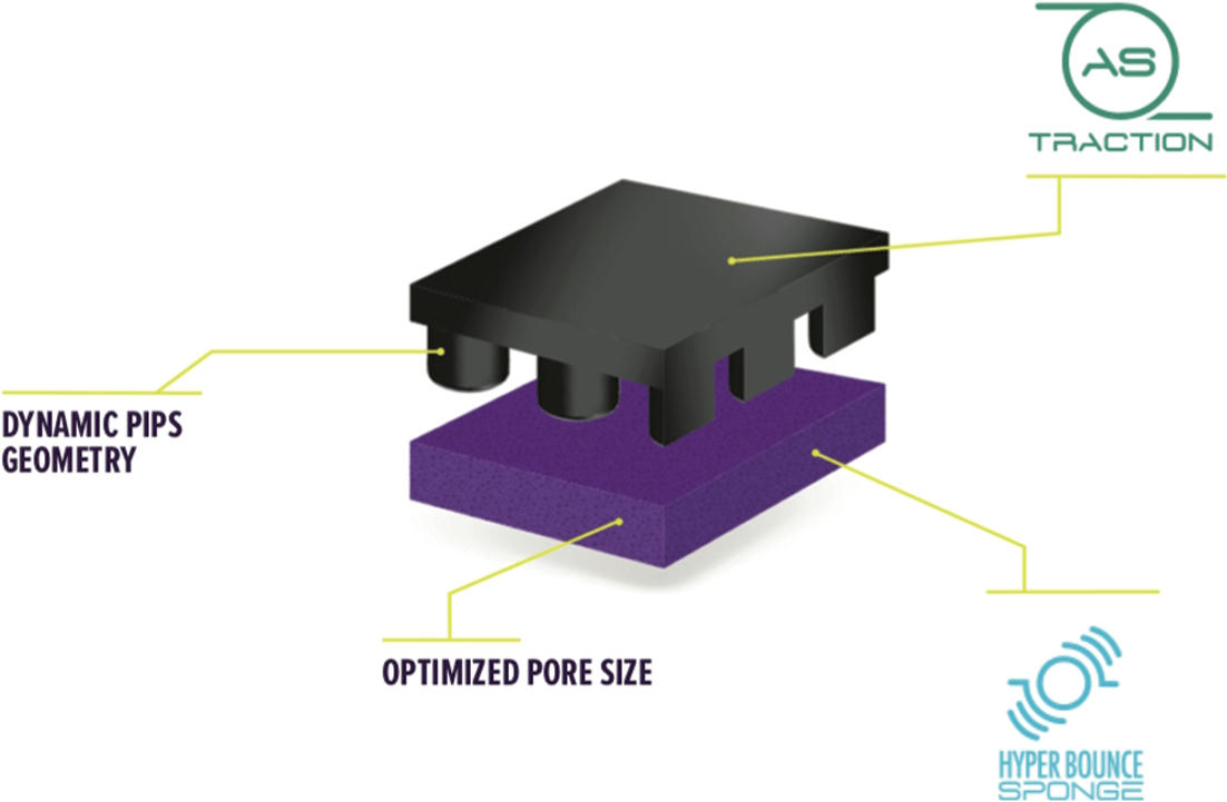 - Hyper Bounce Sponge - яскравий фіолетовий колір Hyper Bounce Sponge символізує інтенсивність, яку ця губка додає у вашу гру. Цю революційну губку було розроблено, щоб мати величезну кількість потенційної енергії, яка вивільняється під час контакту з м’ячем, щоб створити вибухову силу для кожної атаки.