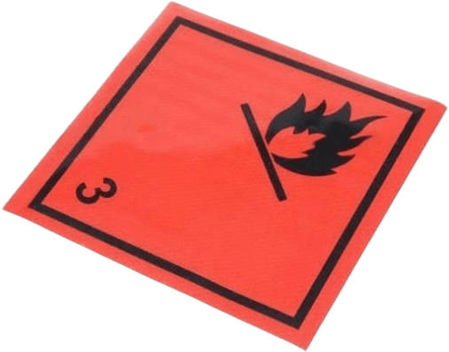 Наклейка "Небезпечний вантаж" - це спеціальний маркувальний елемент, який використовується для позначення вантажів, що підпадають під категорію небезпечних. Вона виконана в червоному кольорі з чорним символом полум'я, що вказує на легкозаймистість матеріалу. Номер «3» у нижньому правому куті позначає клас небезпечних речовин, до якого належить вантаж, а саме - легкозаймисті рідини.