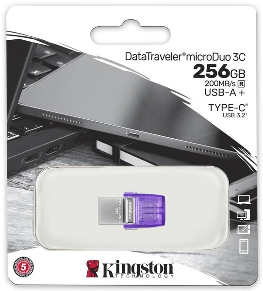 - Накопичувач USB 3.2 Kingston 256GB Gen1 + Type-C DT microDuo 3C R200MB/s (DTDUO3CG3/256GB)
