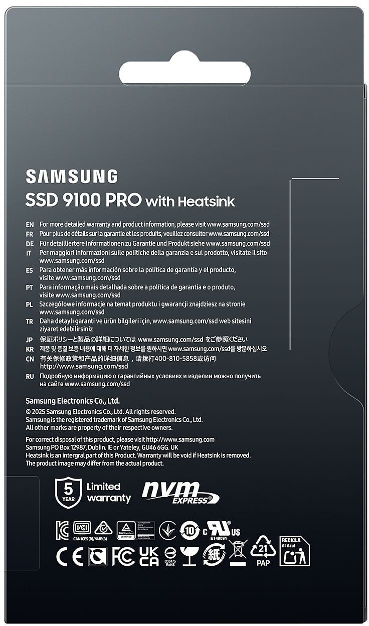 - Накопичувач SSD Samsung M.2 1TB PCIe 5.0 9100PRO+ радіатор