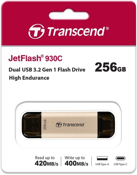 Завдяки використанню флеш-пам'яті 3D NAND та інтерфейсу USB 3.2 Gen1, флеш-накопичувач Transcend JetFlash 930C забезпечує швидкість передачі даних до 420 МБ/с при читанні і 400 МБ/с при записі. Термін експлуатації цих пристроїв у 10 разів перевищує показники звичайних флеш-накопичувачів. Перенесіть ігрові файли миттєво!