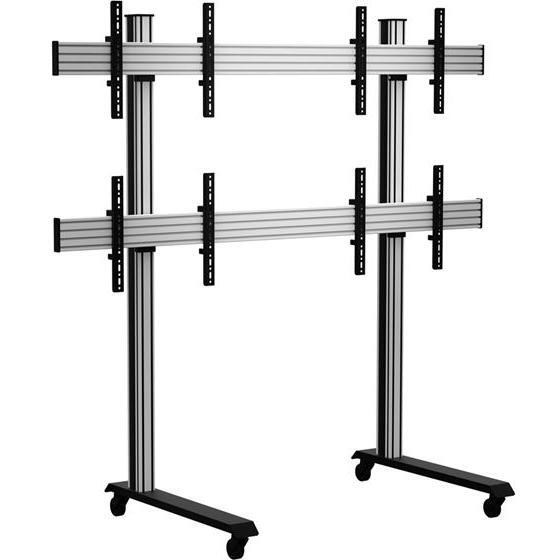 Підлогова стійка для відеостіни VSP4422F з опорами з алюмінієвого профілю застосовується для зручності монтажу та подальшого технічного обслуговування відеостіни. Дисплеї встановлюються по всій висоті опор до 1800 мм. Система мікро-регулювання в 3 площинах дозволяє вирівняти екрани в безшовну відеостіну. У даній моделі передбачений захист від випадкового підбиття дисплея, а також приховане укладання кабелів.