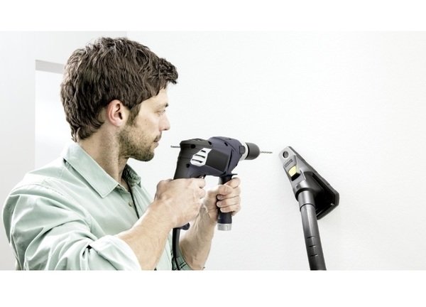 Отвори висвердлюються швидко, але подальша прибирання утворюється при цьому пилу вимагає чималих витрат часу і праці. Нова приналежність для господарських пилососів Kӓrcher серії WD забезпечує свердління стель і стін з усіх звичайних матеріалів без розповсюдження пилу. Вона сумісна з усіма поширеними дрилями, оснащується свердлами діаметром до 15 мм.