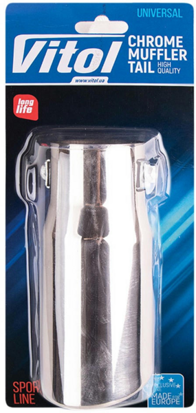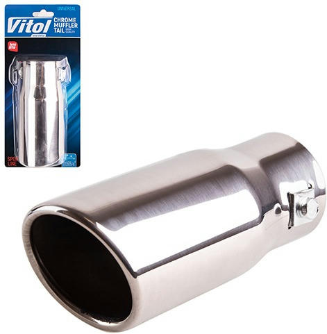 Насадка на глушник від торгової марки Vitol виготовлена на сучасному високоточному обладнанні, що гарантує високу якість виконання виробу. Діаметри насадок відповідають самому поширеній розміром вихлопних труб у глушників легкових і вантажних автомобілів. Насадка на глушник несе в собі дві властивості, перше це захист вихлопної труби від корозії, практично повністю, виключаючи контакт вихлопної труби з зовнішньо середовищем, друга властивість - це поліпшення естетичного вигляду автомобіля.