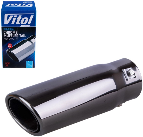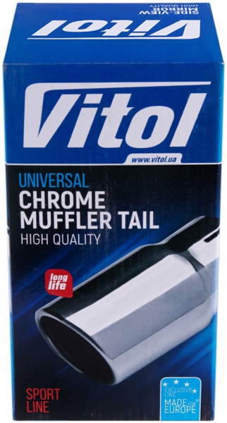 Насадка на глушник від торгової марки Vitol виготовлена на сучасному високоточному обладнанні, що гарантує високу якість виконання виробу. Діаметри насадок відповідають самому поширеній розміром вихлопних труб у глушників легкових і вантажних автомобілів. Насадка на глушник несе в собі дві властивості, перше це захист вихлопної труби від корозії, практично повністю, виключаючи контакт вихлопної труби з зовнішньо середовищем, друга властивість - це поліпшення естетичного вигляду автомобіля.