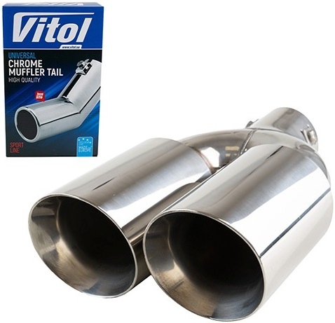 Насадка на глушник від торгової марки Vitol виготовлена на сучасному високоточному обладнанні, що гарантує високу якість виконання виробу. Діаметри насадок відповідають самому поширеній розміром вихлопних труб у глушників легкових і вантажних автомобілів. Насадка на глушник несе в собі дві властивості, перше це захист вихлопної труби від корозії, практично повністю, виключаючи контакт вихлопної труби з зовнішньо середовищем, друга властивість - це поліпшення естетичного вигляду автомобіля.