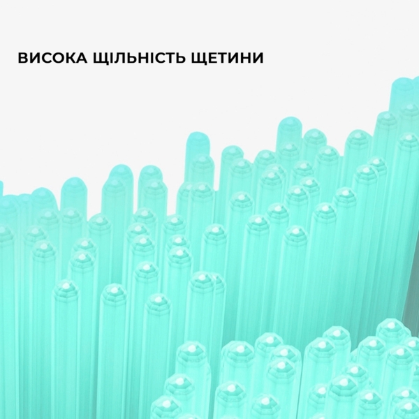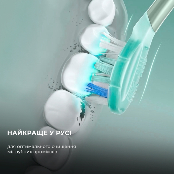 Щетинки розміщені за формою літери W, що дає змогу їм проникати глибше в міжзубні проміжки та ретельно очищати кожну ділянку порожнини рота. Така конфігурація гарантує максимальне покриття поверхні зубів і допомагає видаляти залишки їжі та наліт навіть у важкодоступних місцях. У результаті ви отримуєте ідеально чисті зуби та відчуття свіжості після кожної процедури.